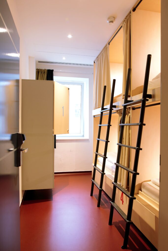 Alle drei unserer 4-Bett-Schlafsäle sind kleine Räume, ideal für eine Gruppe von 4 Personen, die zusammen übernachten möchten, oder für Einzelpersonen, die so viel Privatsphäre wie möglich zu einem günstigen Preis suchen. Maßgeschneiderte Schlafkabinen – ausgestattet mit Leselampen, Vorhangtrennungen und zwei Steckdosen (220 V) – bieten unseren Schlafsaal-Gästen Privatsphäre und Komfort. Große, integrierte Schließfächer stehen im Raum zur Verfügung, um Ihre Sachen ohne zusätzliche Kosten zu verstauen. Dorm guest are provided with a large pillow , warm covers wrapped in comfy linen , and a large towel . Alle unsere Schlafsäle befinden sich im ersten Stock und sind mit Klimaanlage ausgestattet. Die Gemeinschaftsbäder sind geräumig, sauber, bieten rund um die Uhr heißes Wasser und verfügen über kostenlose Haartrockner. Die Küche und der Essbereich sind ebenfalls gut ausgestattet und bieten den Gästen jederzeit kostenlosen Tee und Kaffee sowie eine Spülmaschine, Kühlschränke und weitere Annehmlichkeiten.
