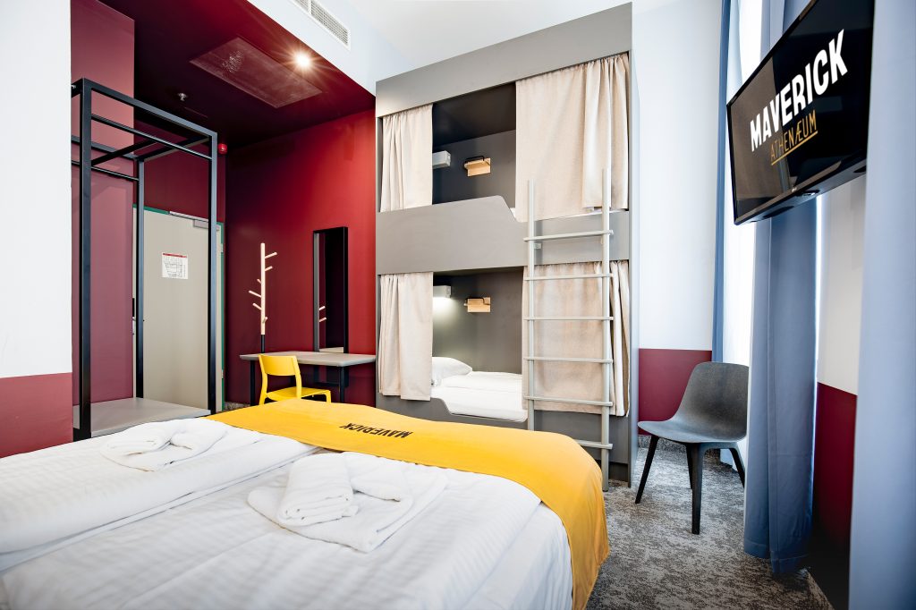Moderne et accueillante, cette chambre quadruple avec salle de bain privée comprend un lit double confortable et un lit superposé robuste, parfaits pour les familles ou les petits groupes. Du linge frais, des oreillers moelleux et des serviettes douces sont fournis à tous les clients. La chambre comprend la climatisation, la télévision par câble et une salle de bain privée avec sèche-cheveux — idéale pour ceux qui recherchent confort et commodité tout en explorant la ville. Les équipements de la chambre sont à la hauteur de l’ambiance incroyable du meilleur hostel de Budapest, le Maverick, où les espaces communs deviennent un lieu de rencontre pour des personnes du monde entier.