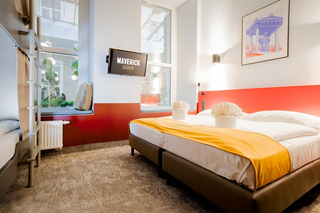 Moderne et accueillante, cette chambre quadruple avec salle de bain privée comprend un lit double confortable et un lit superposé robuste, parfaits pour les familles ou les petits groupes. Du linge frais, des oreillers moelleux et des serviettes douces sont fournis à tous les clients. La chambre comprend la climatisation, la télévision par câble et une salle de bain privée avec sèche-cheveux — idéale pour ceux qui recherchent confort et commodité tout en explorant la ville. Les équipements de la chambre sont à la hauteur de l’ambiance incroyable du meilleur hostel de Budapest, le Maverick, où les espaces communs deviennent un lieu de rencontre pour des personnes du monde entier.